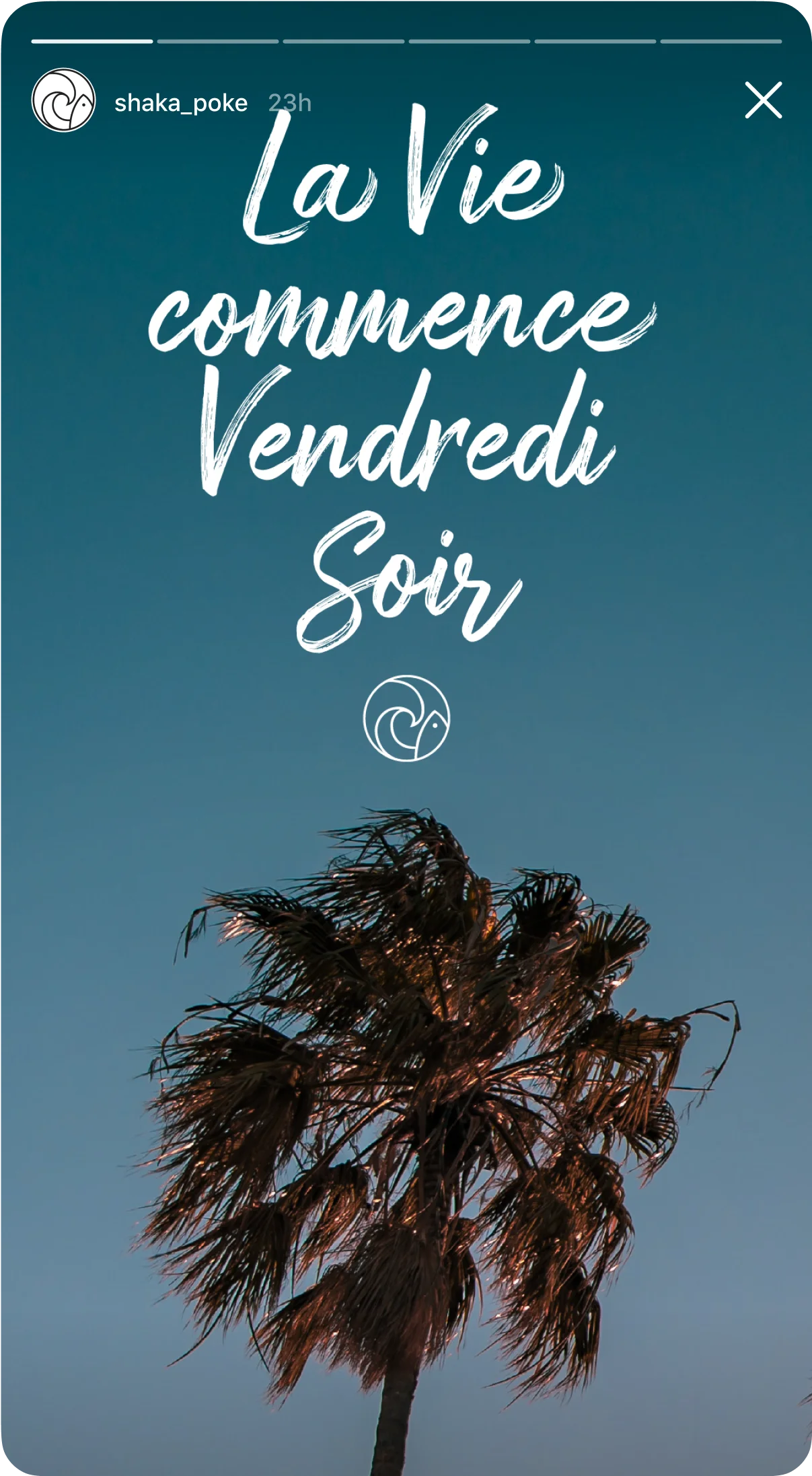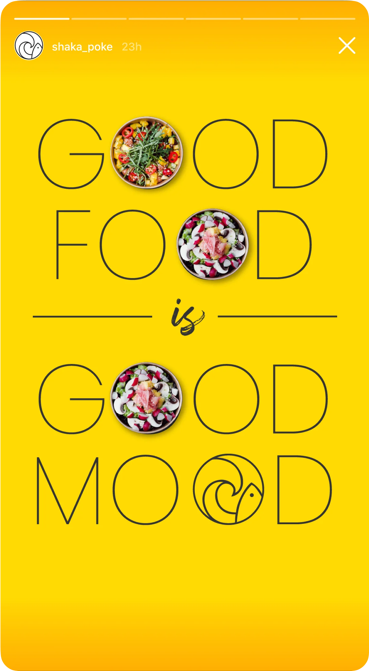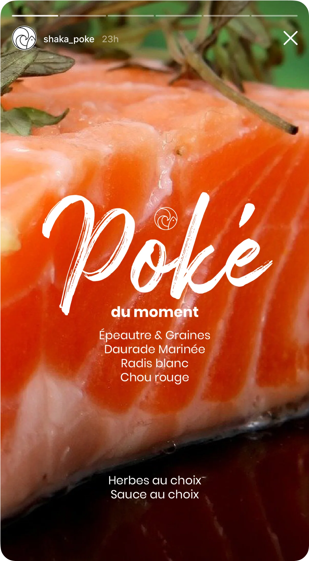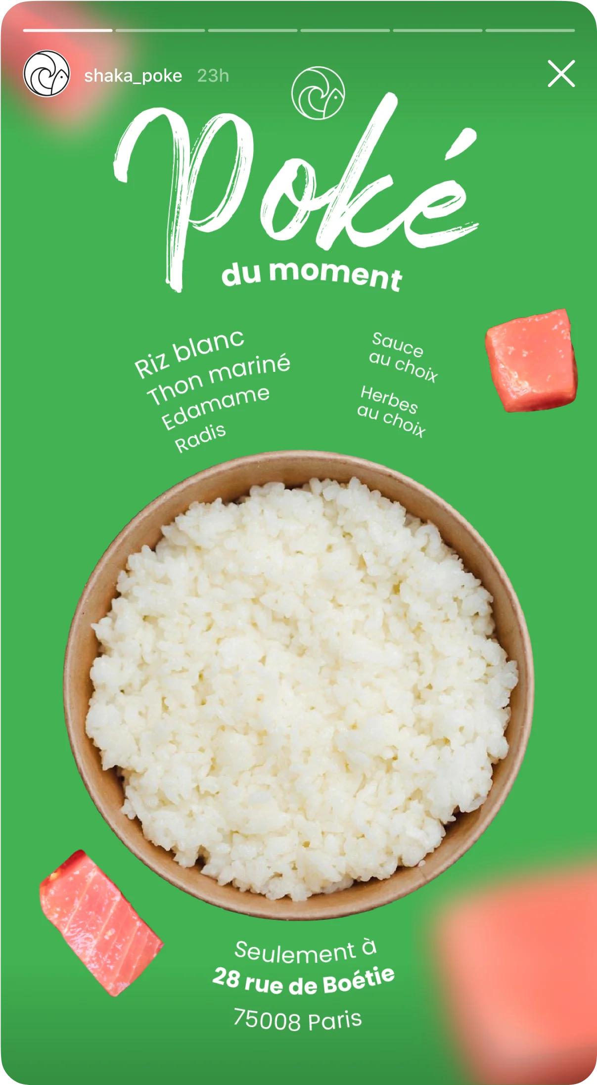 Shaka Poke (Paris) — гавайское кафе с двумя точками в центре Парижа. Я работал над визуальным оформлением Instagram-сторис, что стало моей первой коммерческой задачей в дизайне.