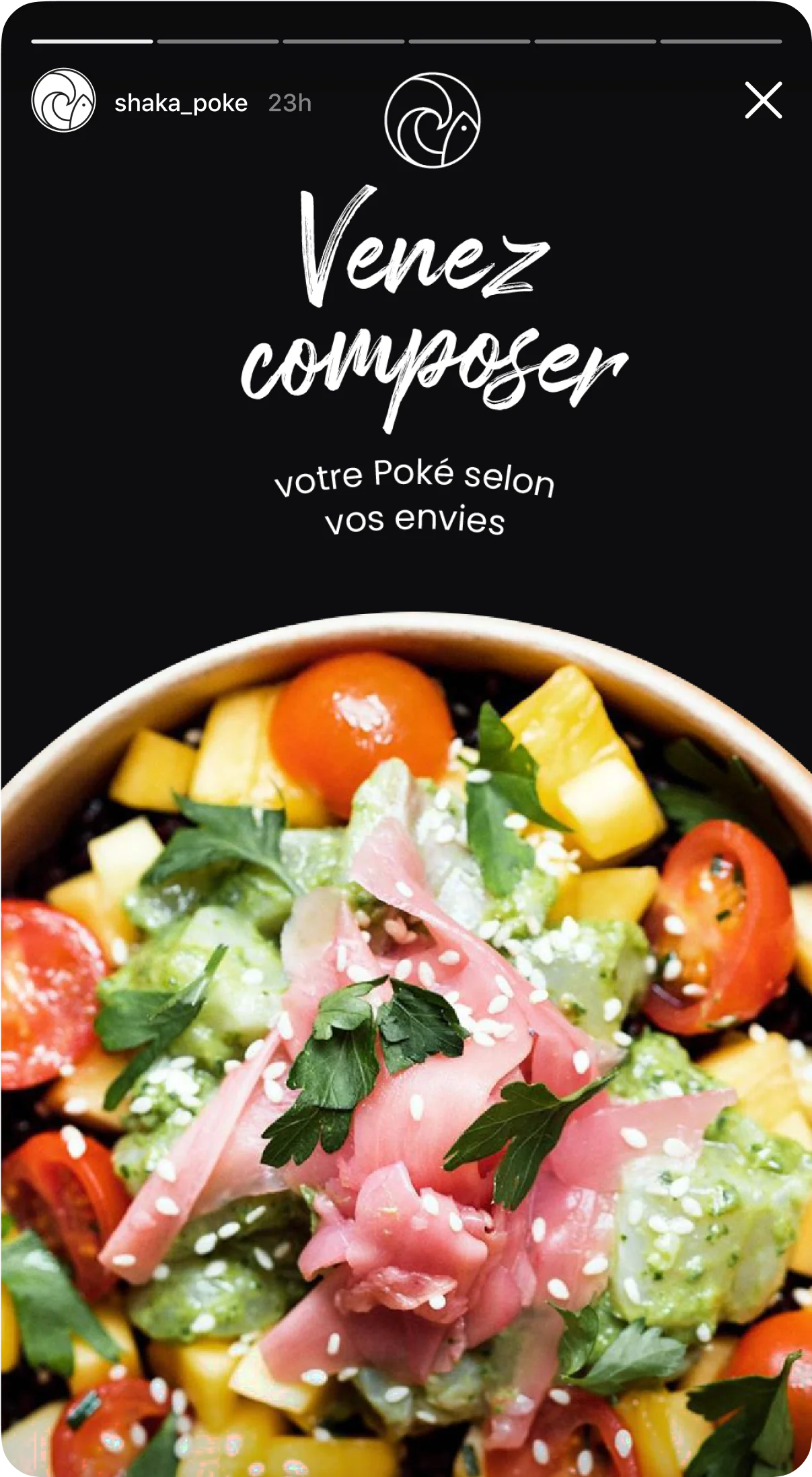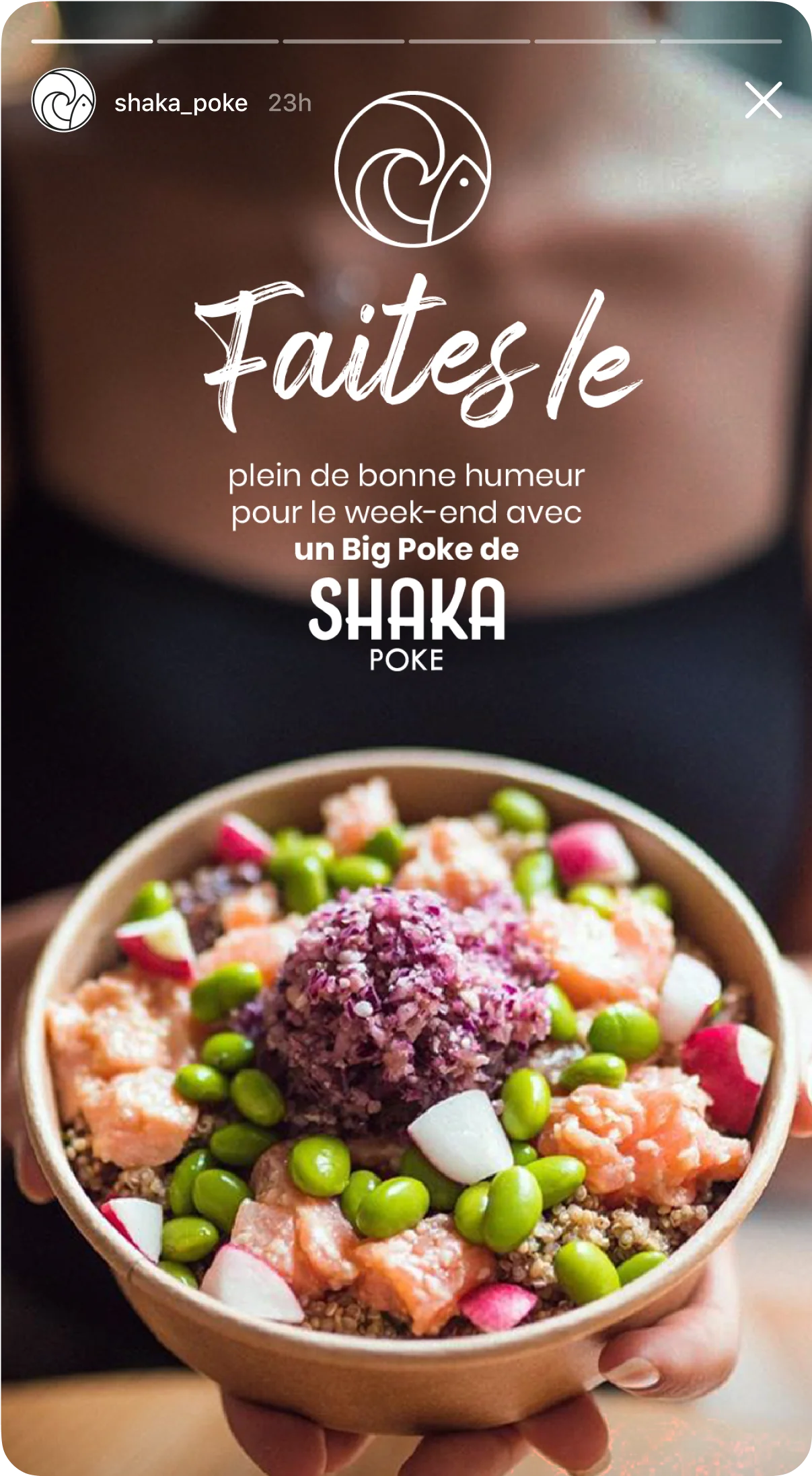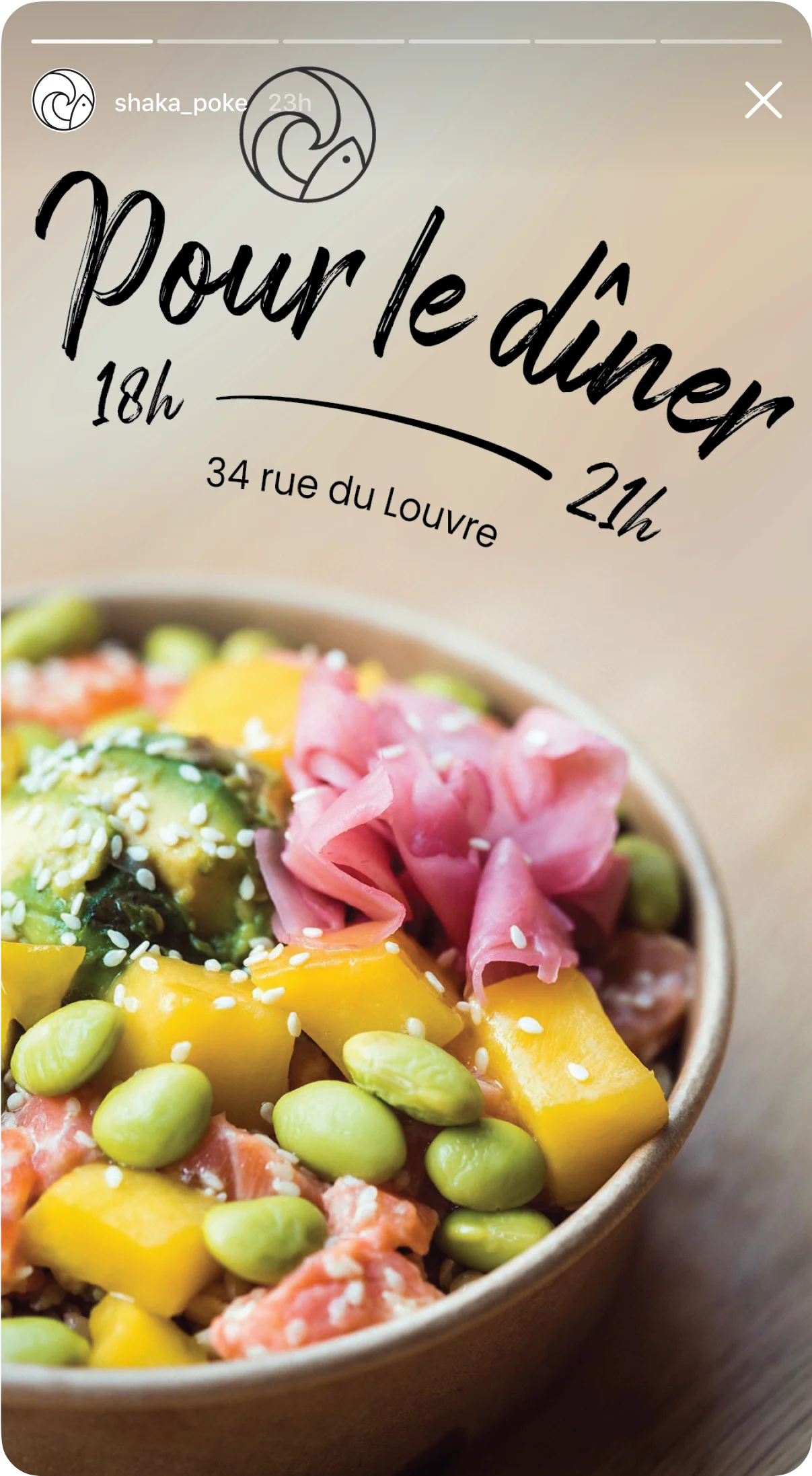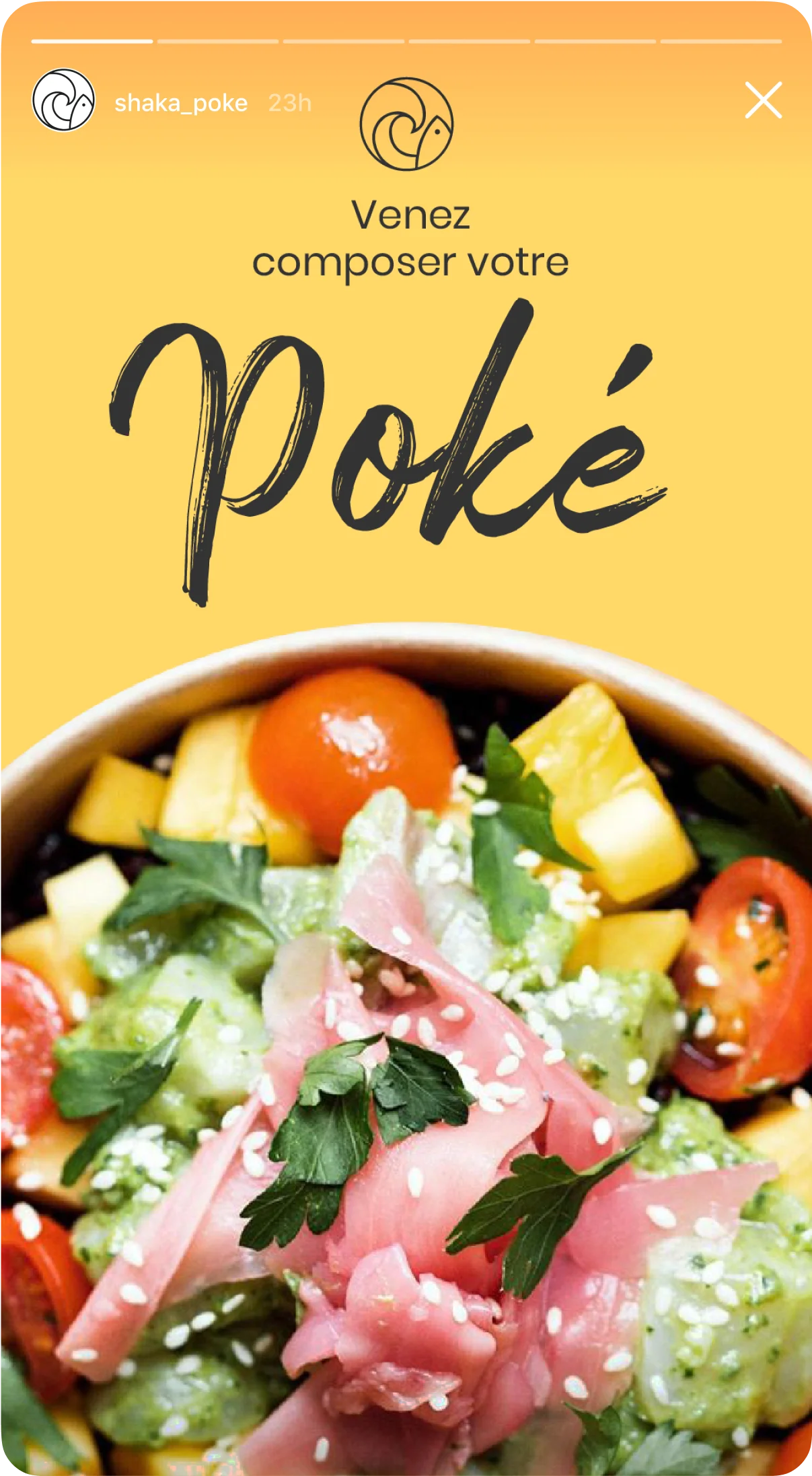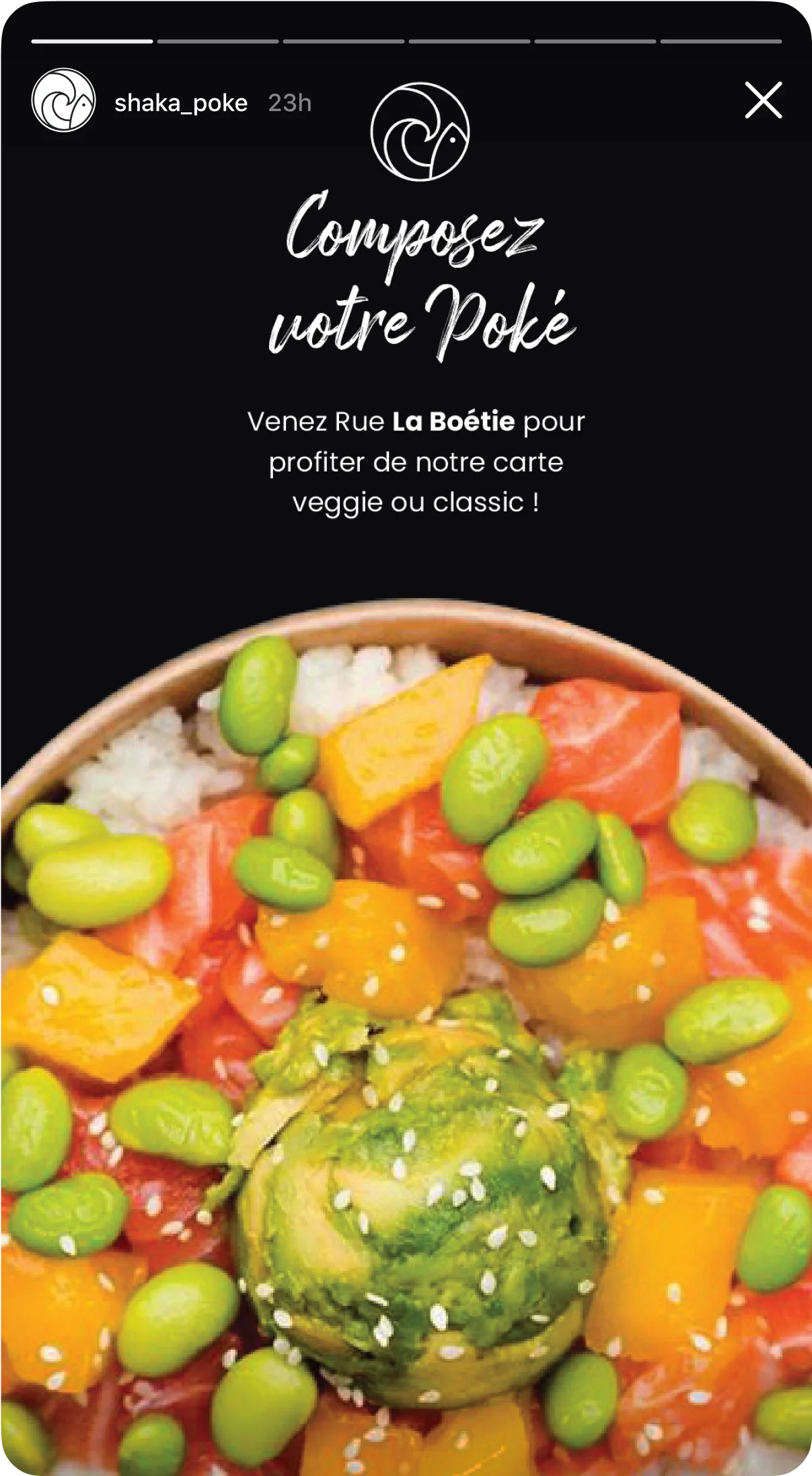 Shaka Poke (Paris) — гавайское кафе с двумя точками в центре Парижа. Я работал над визуальным оформлением Instagram-сторис, что стало моей первой коммерческой задачей в дизайне.