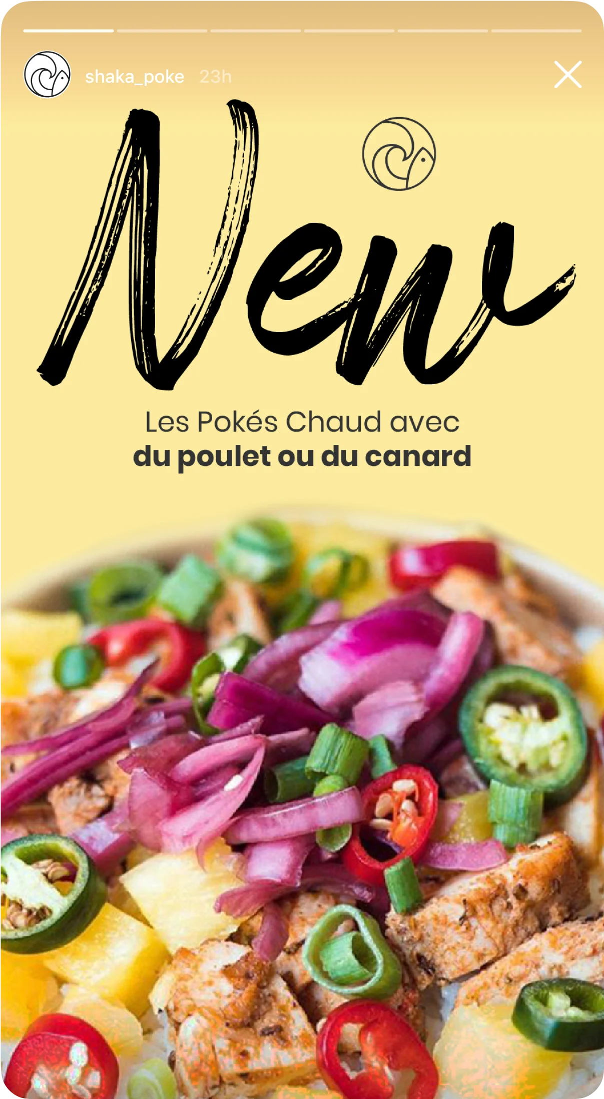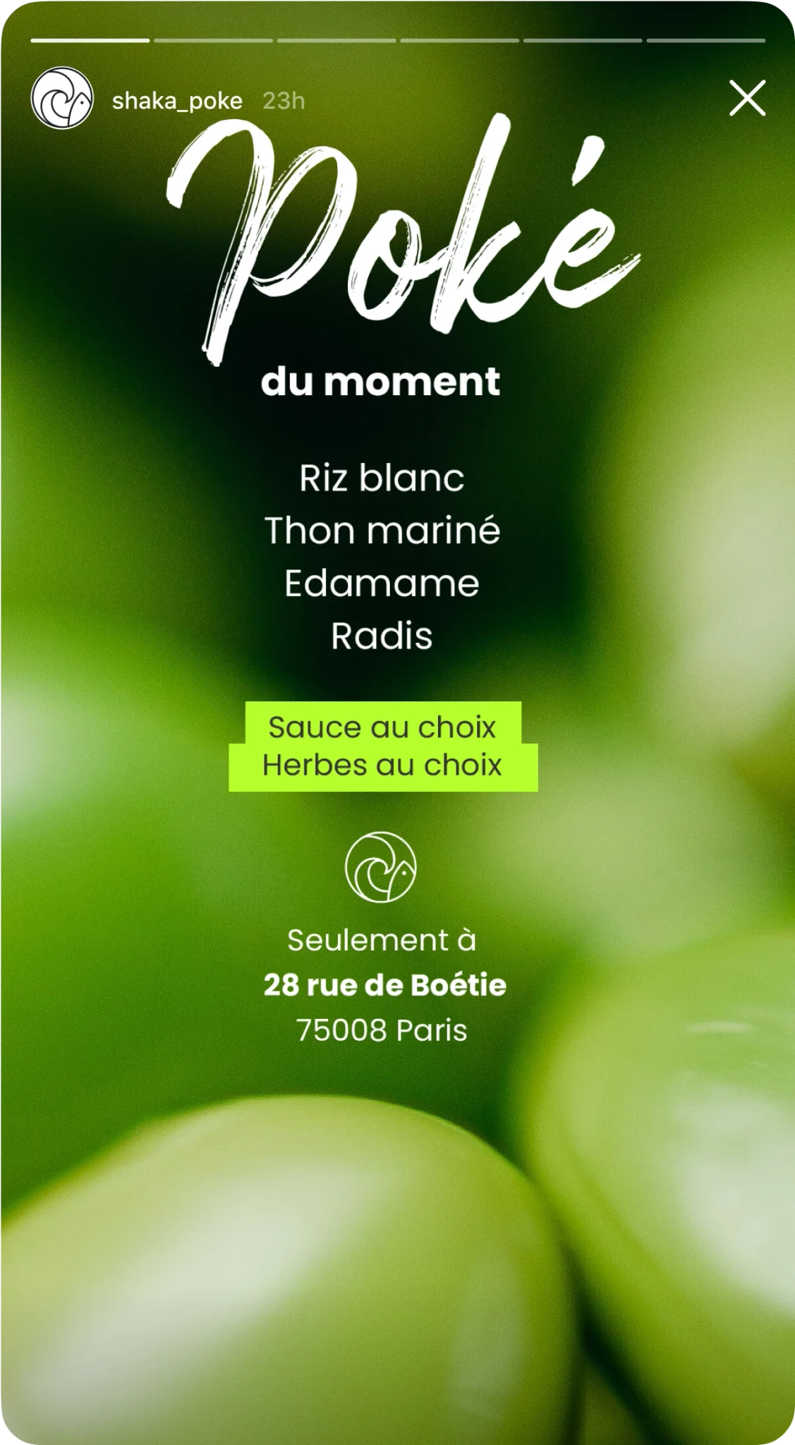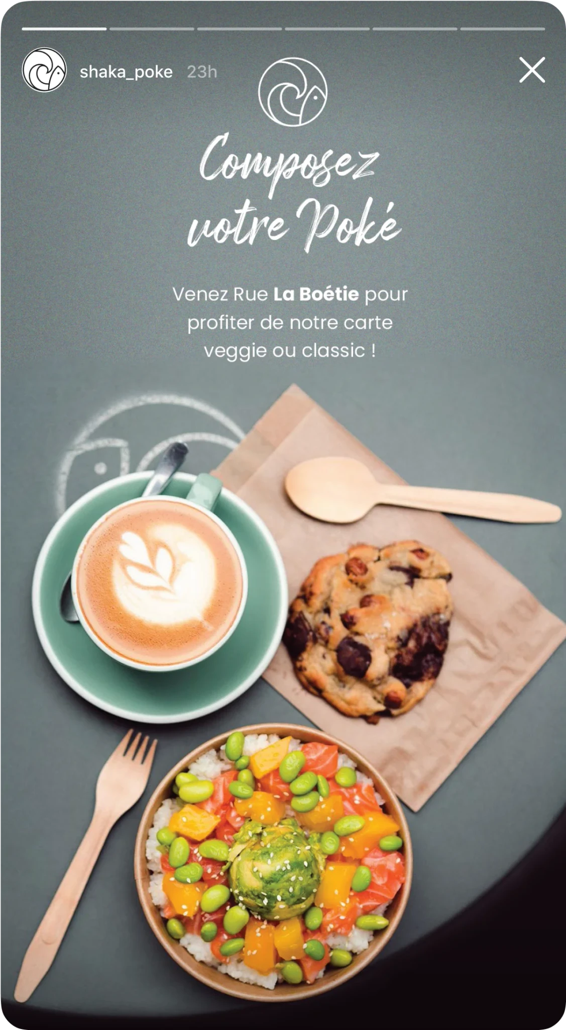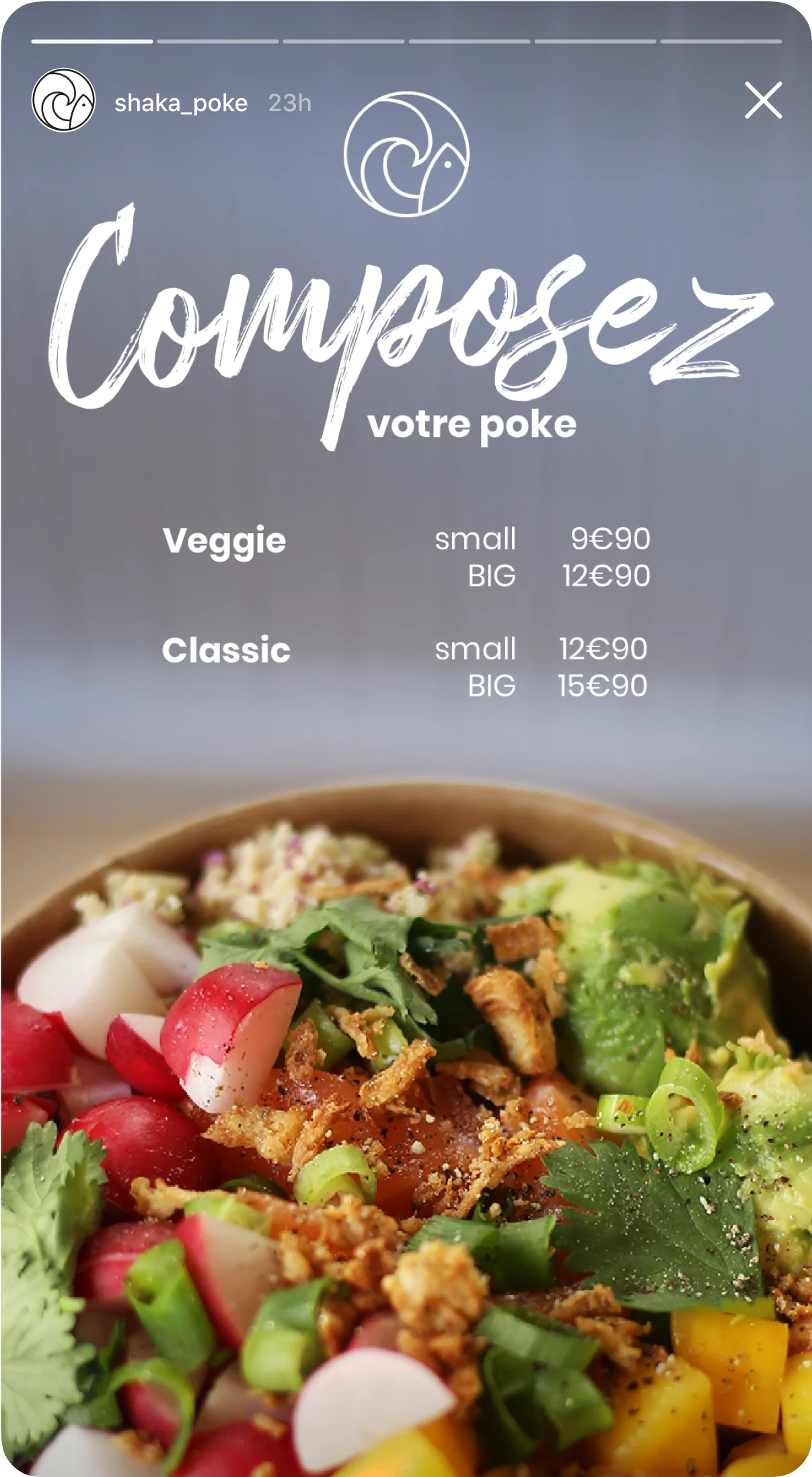 Shaka Poke (Paris) — гавайское кафе с двумя точками в центре Парижа. Я работал над визуальным оформлением Instagram-сторис, что стало моей первой коммерческой задачей в дизайне.