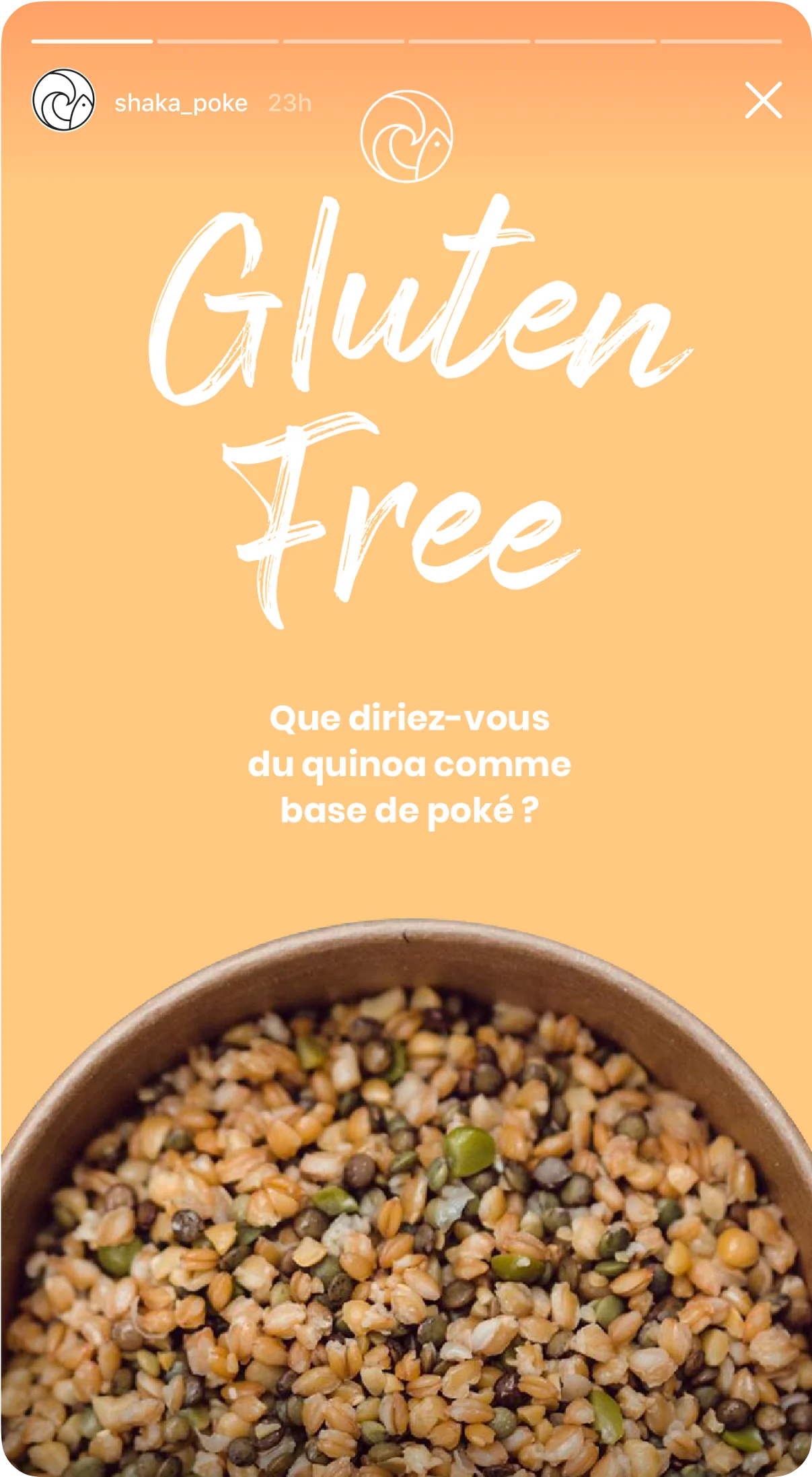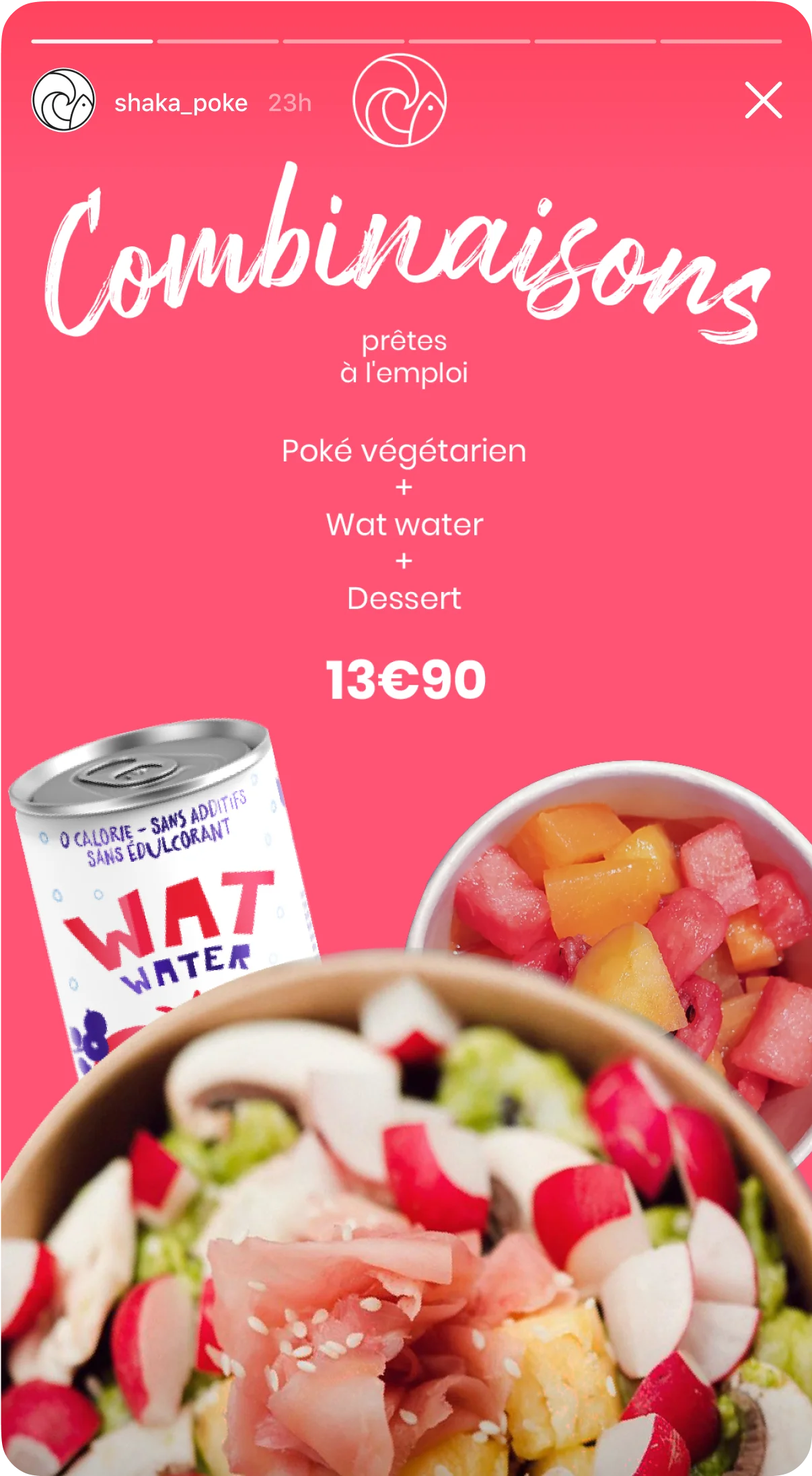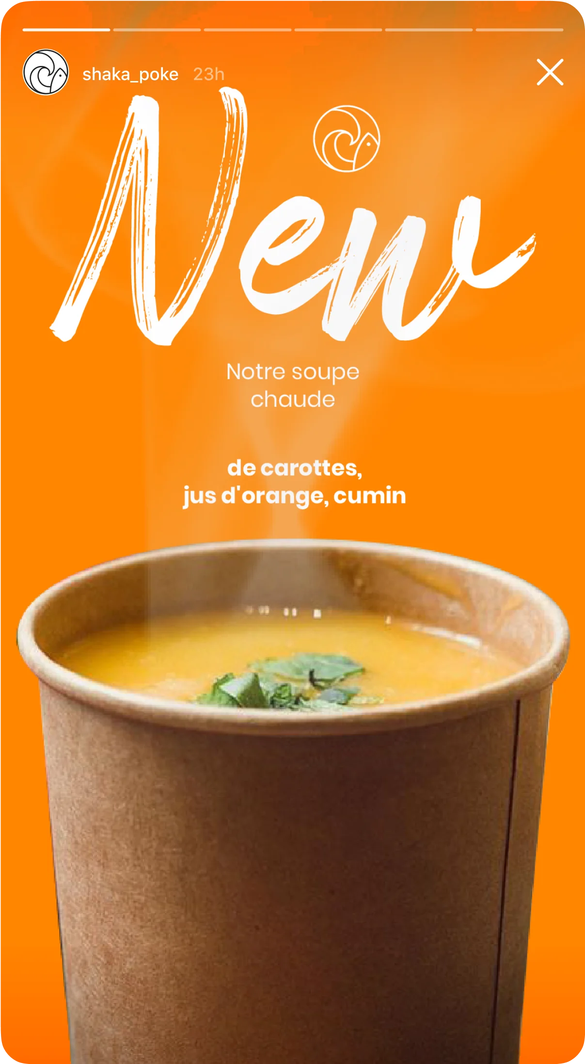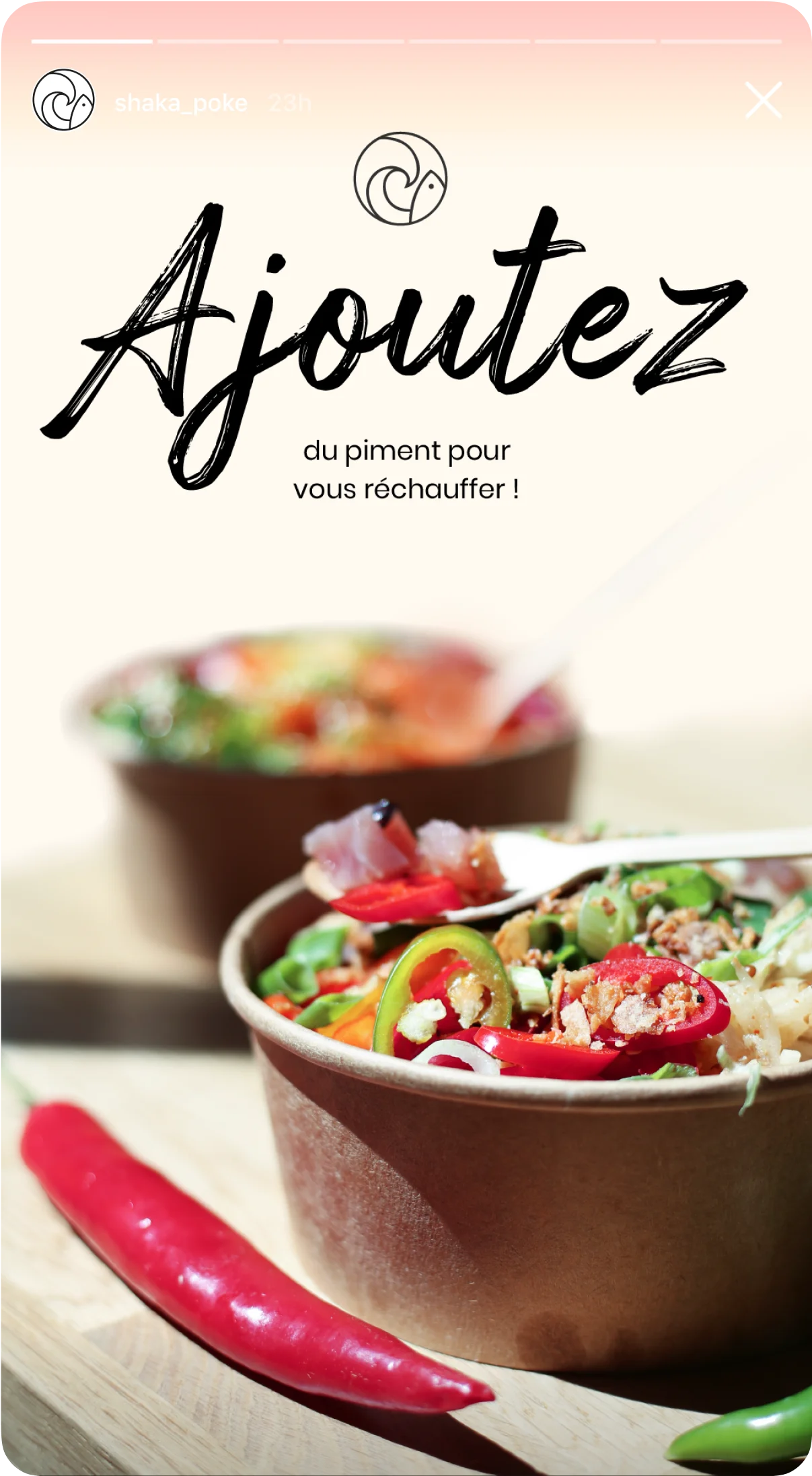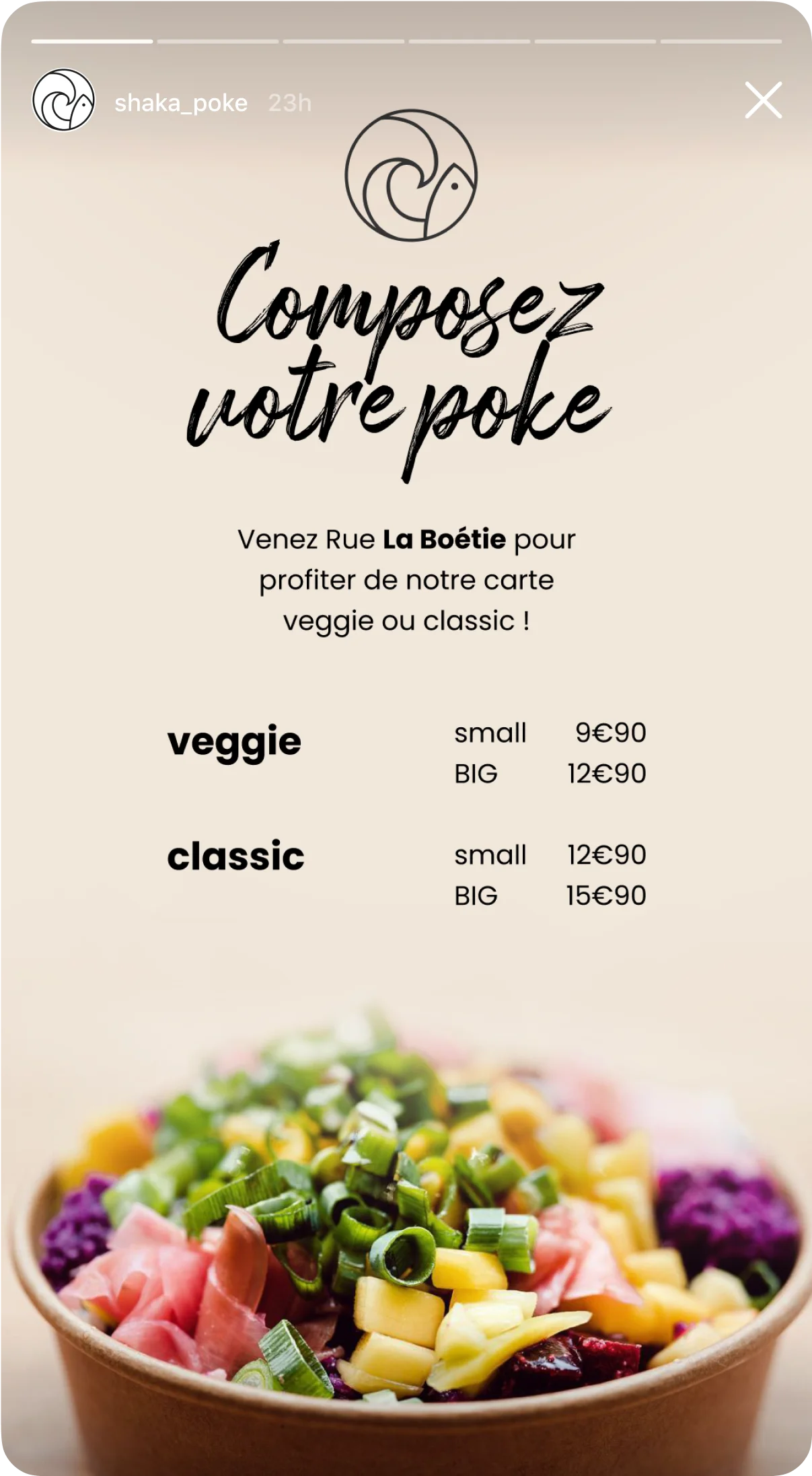 Shaka Poke (Paris) — гавайское кафе с двумя точками в центре Парижа. Я работал над визуальным оформлением Instagram-сторис, что стало моей первой коммерческой задачей в дизайне.